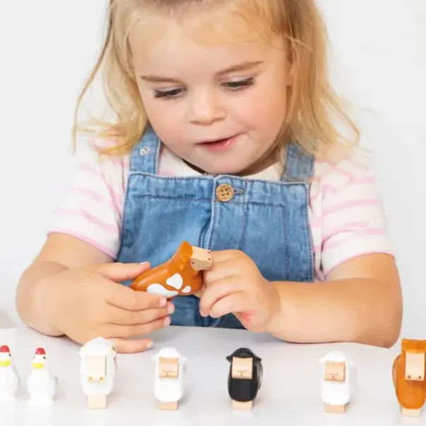 Inneholder: 1 hund, 2 høner, 3 sauer, 1 gris, 2 kuer og 1 hest