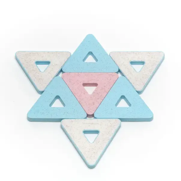 Magnetisk byggsats bestående av 96 delar; 48 kvadrater och 48 trianglar.