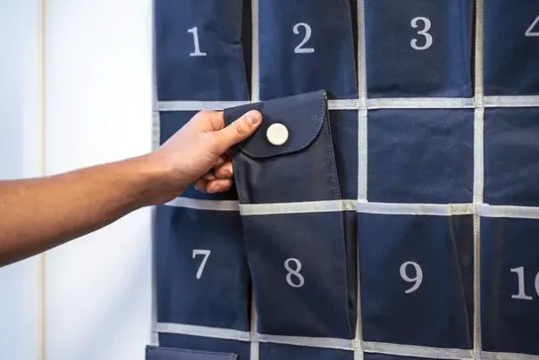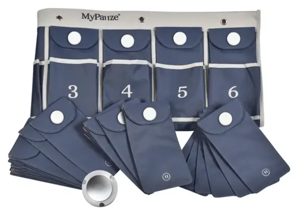 Dekselet passer til alle telefoner opp til 6,7″. Alle tapte anrop, tekstmeldinger og varsler vises når mobiltelefonen kommer ut av mobiltrekket. Mobiltelefonens alarm og vekkerklokke fungerer som vanlig i dekselet. Hotellets oppbevaringsrom er nummerert fra 1–30 og har 4 metallringer for enkel oppheng. Laget av slitesterkt polyesterstoff i mørkeblått.