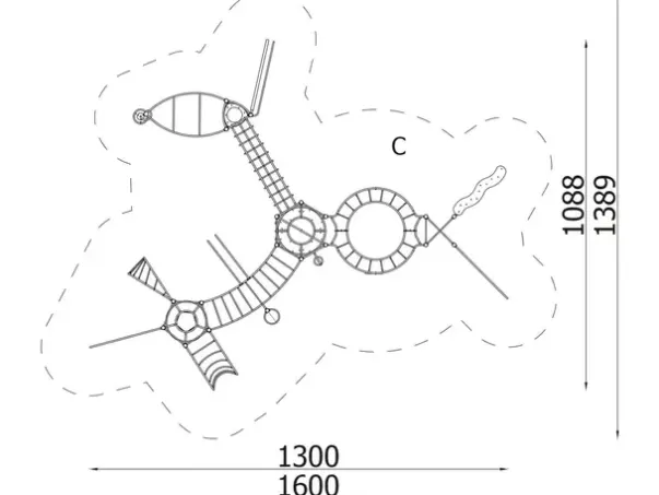 Funksjoner: Hinderløype, klatrevegg, balansebom, brannmannstang, armgang, treningselementer