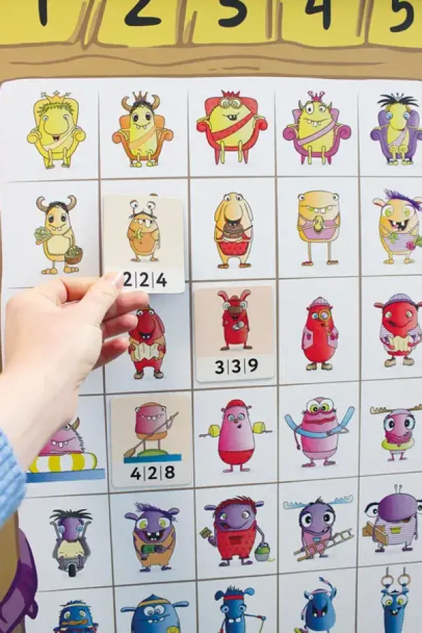 Dette settet med plakater og magneter gir en trinn-for-trinn-introduksjon til multiplikasjonsverdenen. Takket være det intelligente konseptet til Peppers Monster World, blir barn ikke bare kjent med disse små monstrene, men også multiplikasjonstabellene. Et morsomt multisensorisk læringsspill!