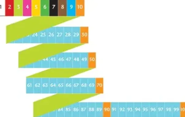 Du kan også bruke båndet til divisjon. Ta utgangspunkt i svaret og gå motsatt vei. Eksempelvis er 25 delt på fem bretter lik fem. Laget i plastbelagt papir og kan med fordel benyttes sammmen med cuisenairestaver.