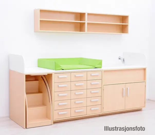 6 store rom under stelleplaten som kan brukes til oppbevaring av bleier osv.