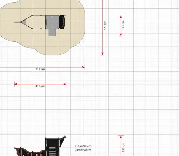 Sikkerhetsareal: L713 x B471 cm, 34 m²