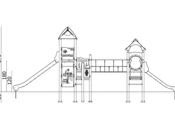 Funksjoner: Lekehus, rørbro, taubro, sklie, klatrevegg