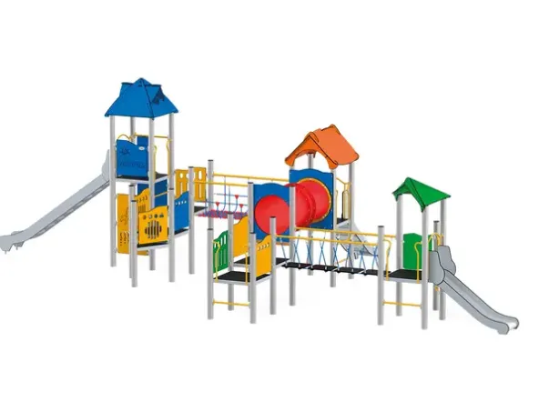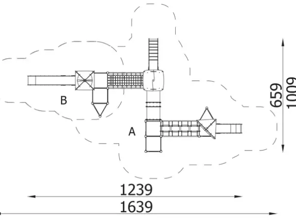 Funksjoner: Lekehus, tunnel, sklie, klatrevegg, stiger