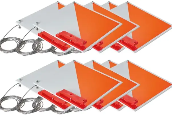 Den oransje og hvite orienteringsskjermen på 20 x 20 cm er enkel å spotte under orienteringsløp.