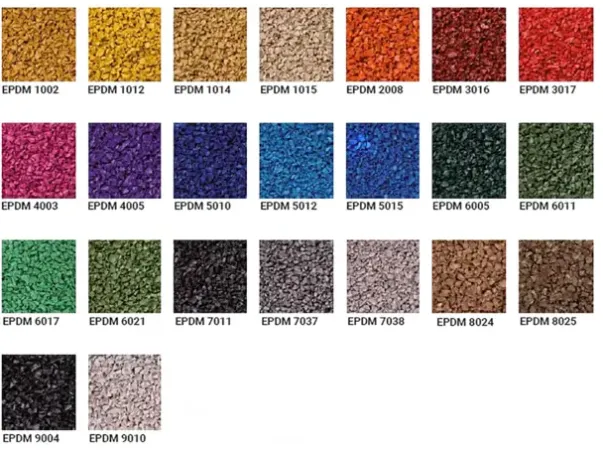 Kant: EPDM 1002, EPDM 1012, EPDM 1014, EPDM 1015, EPDM 2008, EPDM 3016, EPDM 3017, EPDM 4003, EPDM 4005, EPDM 5010, EPDM 5012, EPDM 5015, EPDM 6005, EPDM 6011, EPDM 6017, EPDM 6021, EPDM 7011, EPDM 7037, EPDM 7038, EPDM 8024, EPDM 8025, EPDM 9004, EPDM 9010
