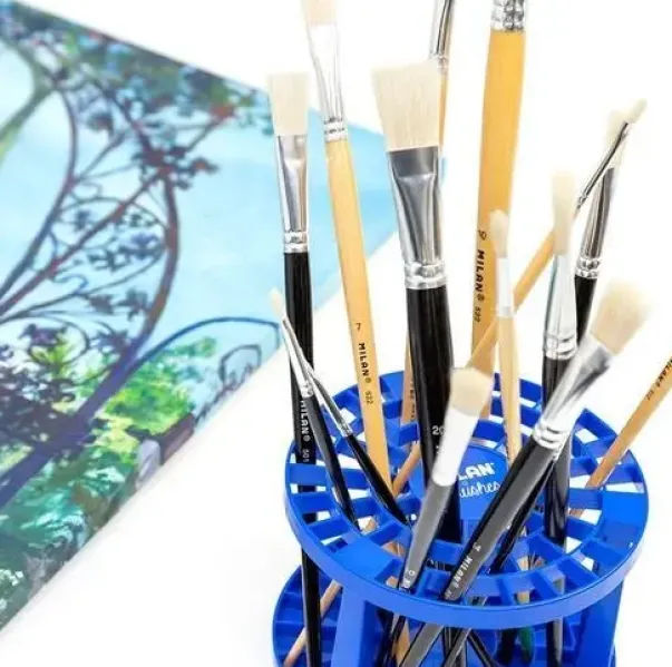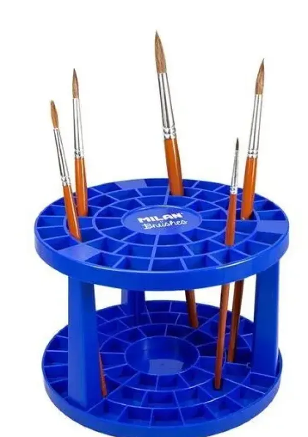 Penselstativ med plass til opptil 49 børster. Ideell for tørking og organisering av børster. Børstene skal alltid plasseres loddrett med busten oppover, slik at de skånes og beholder formen. Holderen er enkel å montere og består av en base, 1 sirkulær skillevegg og 3 ben.
