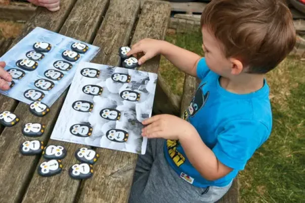 Pingviner i stein som inspirerer til bruk av retnings- og posisjonsspråk, matchingspraksis, problemløsning, mønsterlaging, logisk tenkning og sekvenseringsferdigheter. Alt dette er avgjørende for at barn skal utvikle seg og mestre i hverdagen og gjennom deres interaksjon med teknologi.
