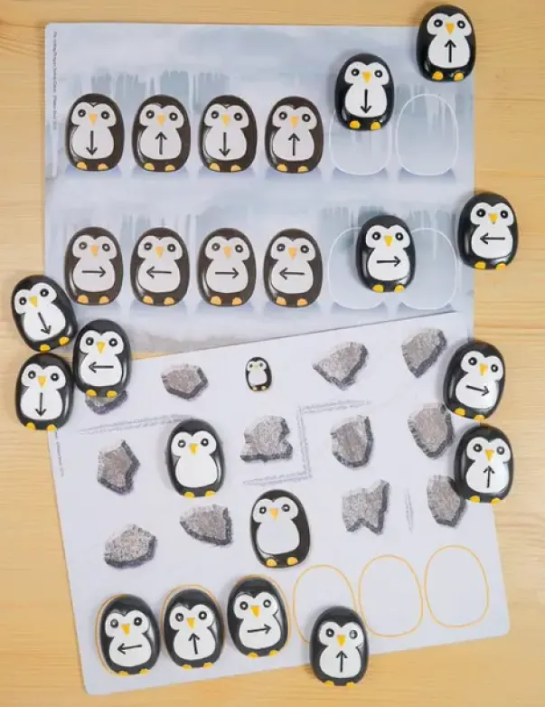 Pingviner i stein som inspirerer til bruk av retnings- og posisjonsspråk, matchingspraksis, problemløsning, mønsterlaging, logisk tenkning og sekvenseringsferdigheter. Alt dette er avgjørende for at barn skal utvikle seg og mestre i hverdagen og gjennom deres interaksjon med teknologi.