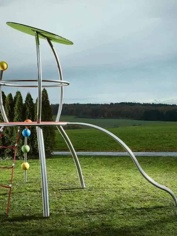Lekeapparat Pluto Materiale i rustfrittstål og gummigranulat.