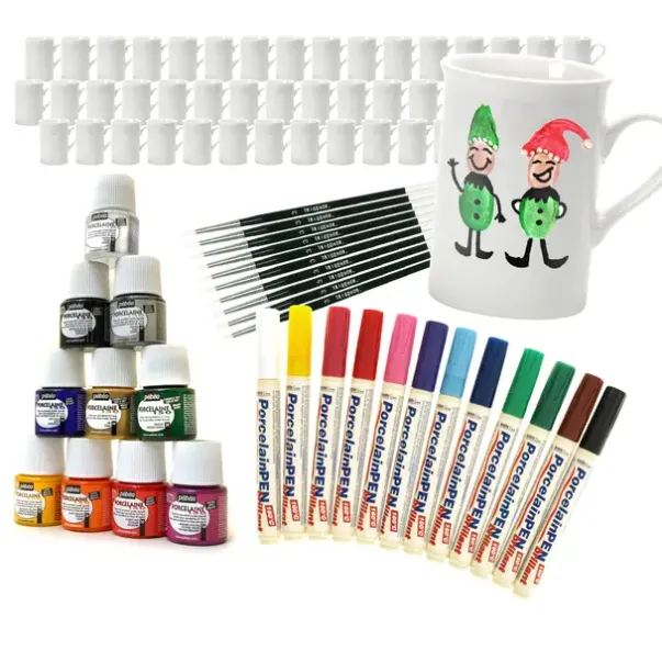 Pakken inneholder 48 stk porselenskrus, 12 stk porselentusj, 10 stk ass. proselenmaling og 10 stk syntetiske pensler.