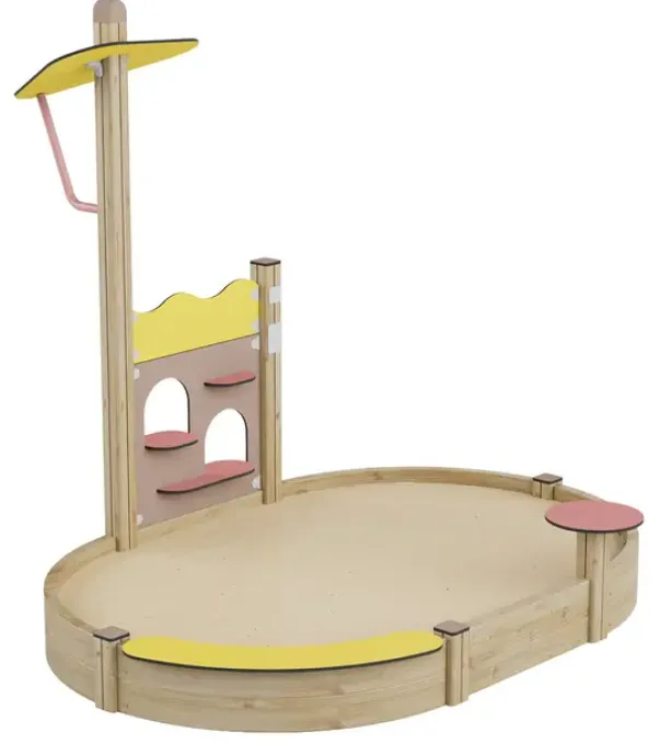 Funksjoner: Sandkasse med små sandbord, hylle/lekebutikk