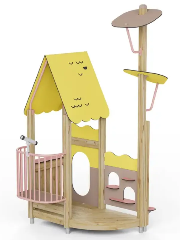 Funksjoner: Lekehus, lekepanel/hyller for butikklek, kikkert