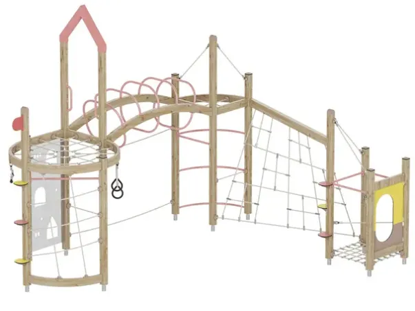 Funksjoner: Armgang, balanseline, skråstilt og vertikalt klatrenett, turnringer