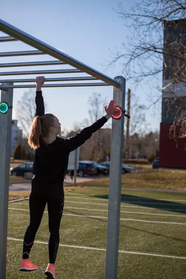 - Mangfoldighet: Det er 16 ulike programmer å velge mellom, og Push-knappene kan brukes hvor som helst – fest dem på veggen, stolper, eller plasser dem på bakken. Kreativiteten din er den eneste begrensningen når det kommer til hvordan du vil forme treningen.
