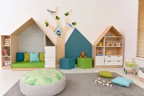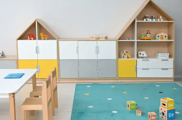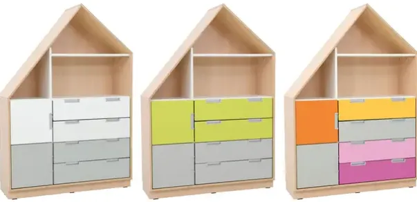 Materiale: Møbelspon 18 mm, laminat lys lønn og hvit