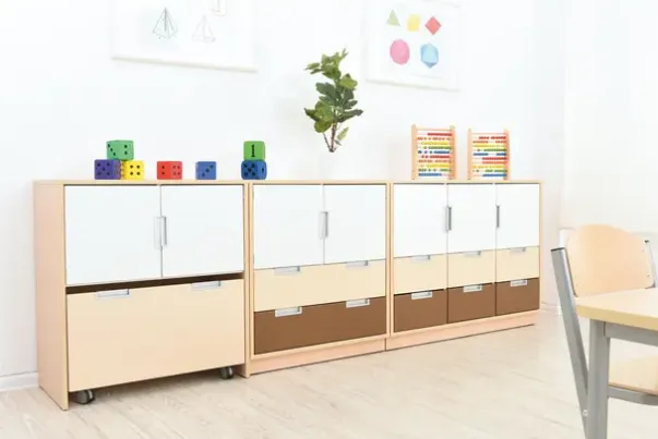 Materiale: Møbelspon 18 mm, laminat lys lønn og hvit