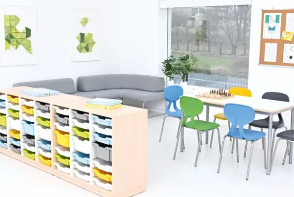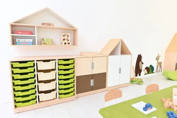 Materiale: Møbelspon 18 mm, laminat lys lønn og hvit