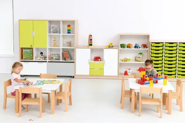 Materiale: Møbelspon 18 mm, laminat lys lønn og hvit farge, MDF, plast