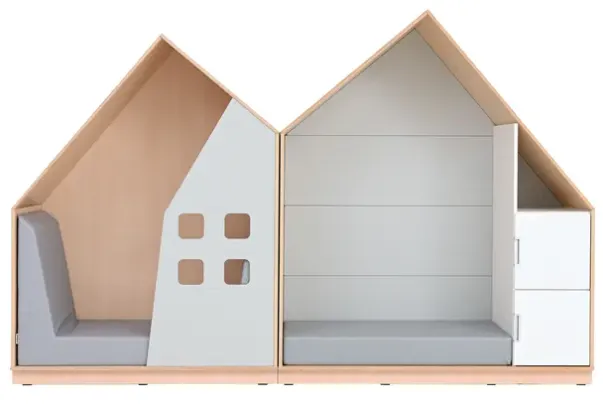 Materiale: Møbelspon 18 mm, laminat lys lønn farge, MDF, kunstskinn