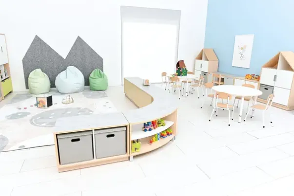 Materiale: Møbelspon 18 mm, laminat lys lønn farge, lys grå linoleum