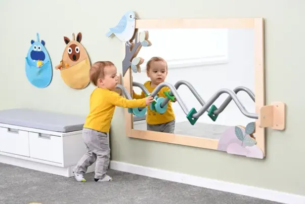 Barre til å feste på vegg som lekeelement eller sammen med speil.