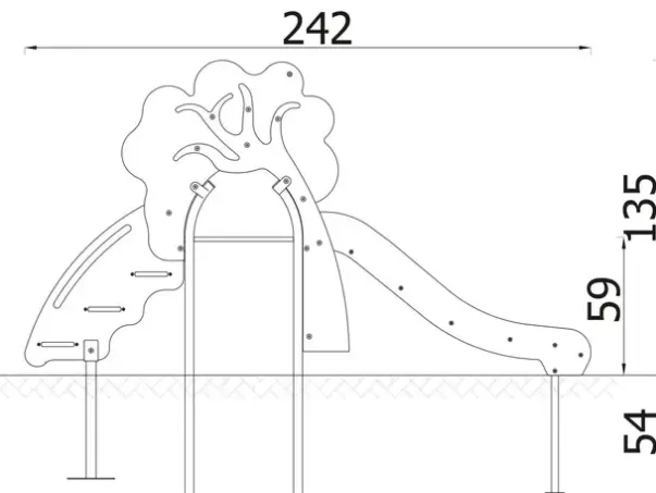 Mål: L242 x B59 x H135 cm