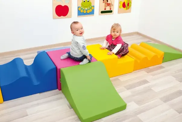 Motorikkbane for barn i skum og slitesterkt trekk i kunstskinn.