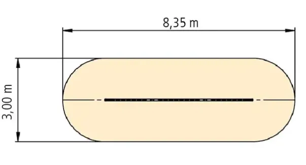 Sikkerhetsareal: L835 x B300 cm, 25 m²
