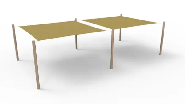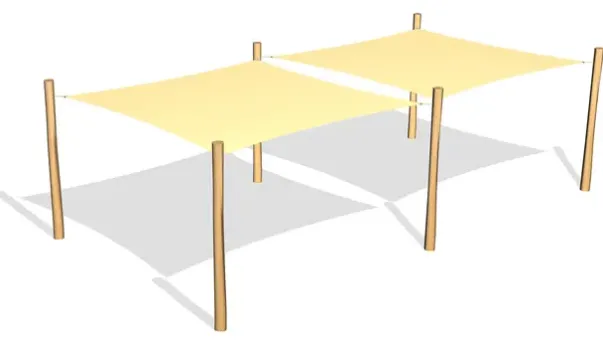 Mål: Stolper 6 x L300 cm Ø8-12 , seil 2 x L360 x B360 cm
