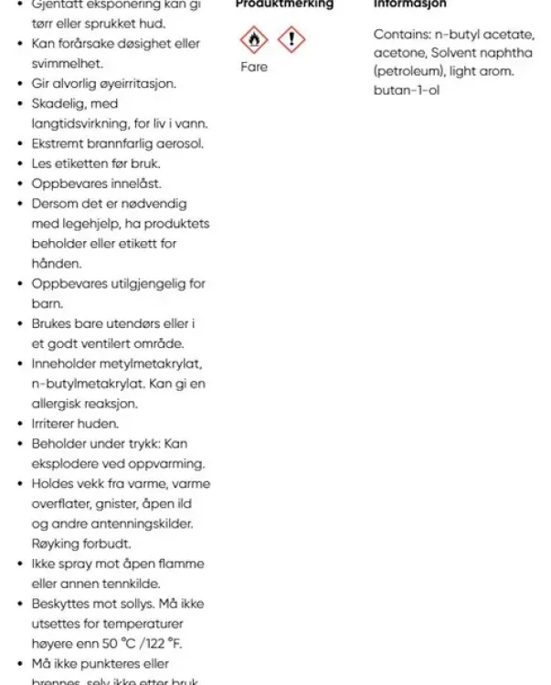 Tips! Test lakken først på liten flate slik at underliggende maling ikke reagerer. F.eks. kan løsemiddelsbasert maling løses opp av en løsemiddelsbasert lakk.