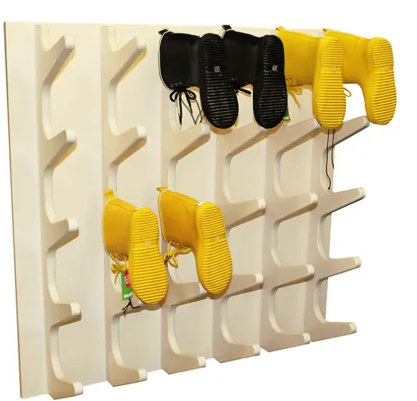 Støvlevegg i 18mm lakkert hvitpigmentert bjerkekryssfiner, en fin og enkel måte å oppbevare støvler og annet fottøy på.