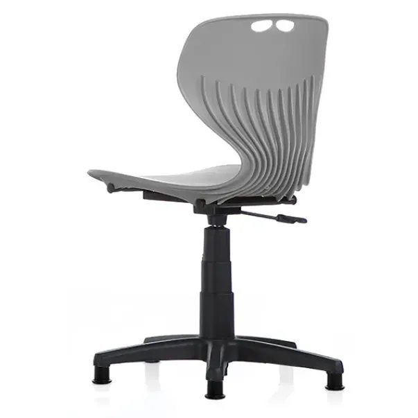 Elev-arbeidsstol i plastskall med fotkryss understell med glideben. Stolen kommer med gasslift og har justerbar høyde. Stolen er enkel å vedlikeholde og tørkes av med en fuktig klut.