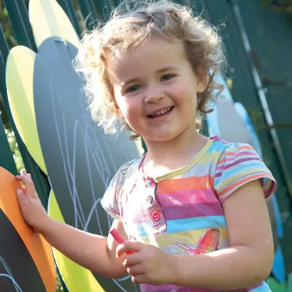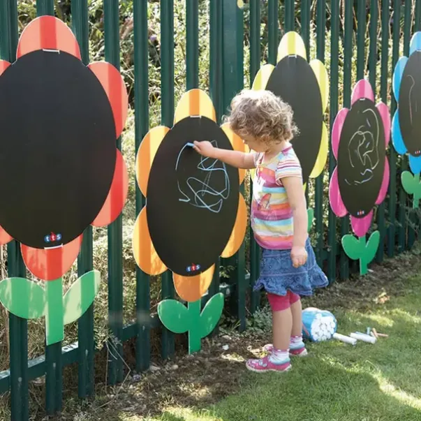 Ferdighet ogfunksjon: Disse fine blomstertavlene gjør ethvert kjedelig gjerde til vakre kunstverk. Lyse og innbydende tavler gir barn et kreativt utløp, og blander sømløst utendørs moro med lærerike aktiviteter. Disse tavlene er perfekte for alt fra temaområder og utendørsleksjoner til å vise frem daglige meldinger, og de frigjør potensialet til uteområder. Utover kunst fungerer de som innovative verktøy for å engasjere seg i lese- og skriveferdigheter og matematikk, noe som gjør utendørs læring både effektiv og hyggelig.
