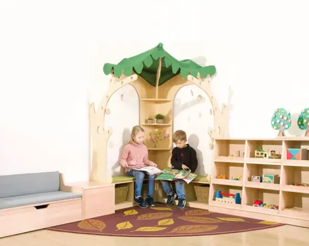 Materiale: Kryssfiner med melaminbelegg, tak og teppe av tekstil