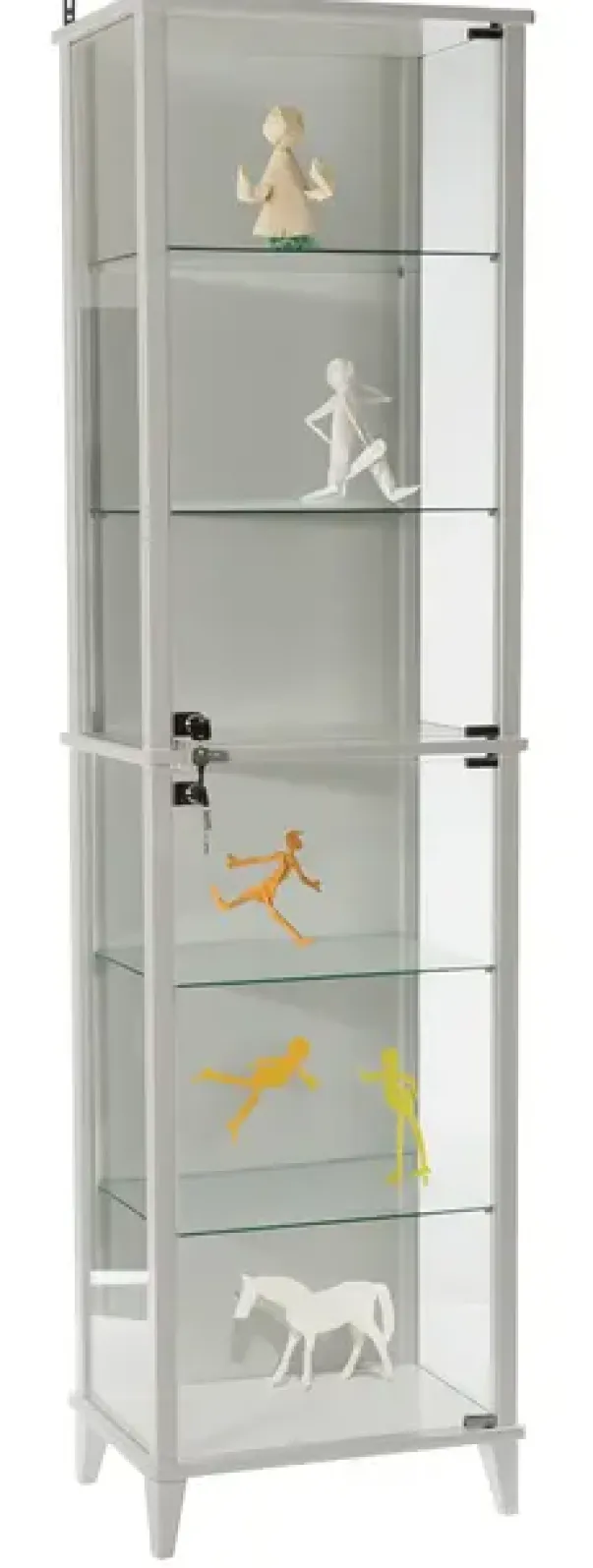 Utstillingsmonter i hvitlakkert bjørk og sikkerhetsglass. Skapet passer godt til å presentere store og små kunstprosjekter eller tema til undervisning.