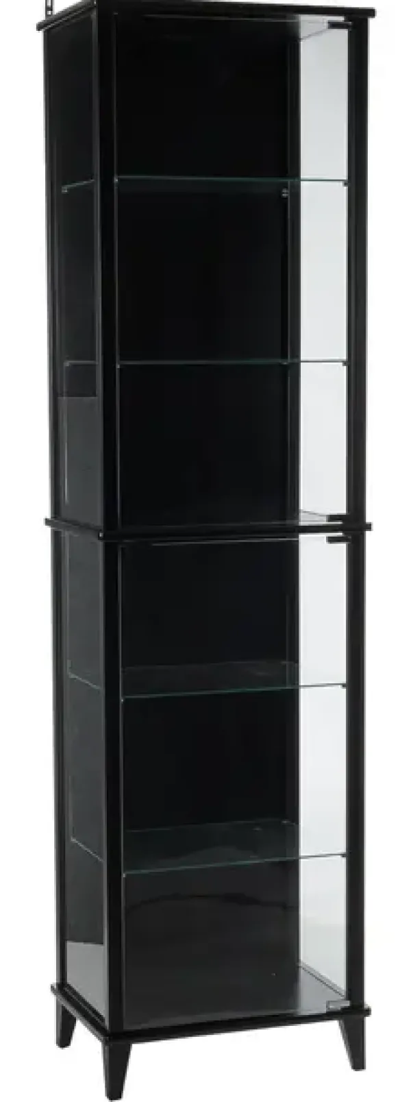 Utstillingsmonter i sortlakkert bjørk og sikkerhetsglass. Skapet passer godt til å presentere store og små kunstprosjekter eller tema til undervisning.