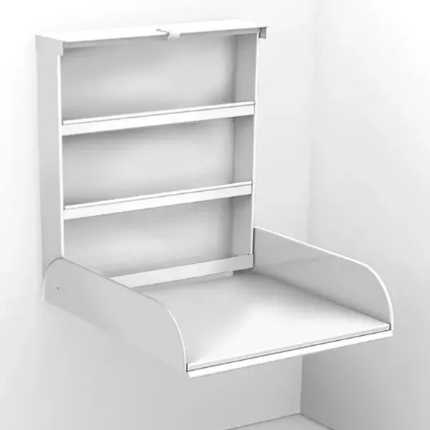 Stellebordet monteres i valgfri høyde på veggen. Stelleplaten er oppfellbar.