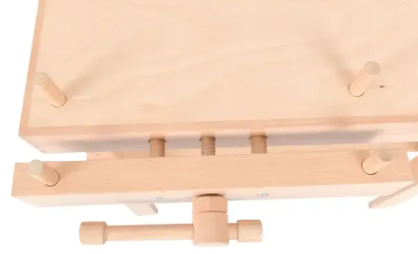 Arbeidsbord med to hyller til maling eller byggearbeid. Høyden kan justeres fra 58 til 74 cm. Størrelse bordplate: 80 x 50 cm. Maks dimensjon 110,5 x 80,5 cm. Størrelse nederste hylle: 73 x 34,5. Dimensjon tvinge m/håndtak: 50 x 11-30,5 cm.
