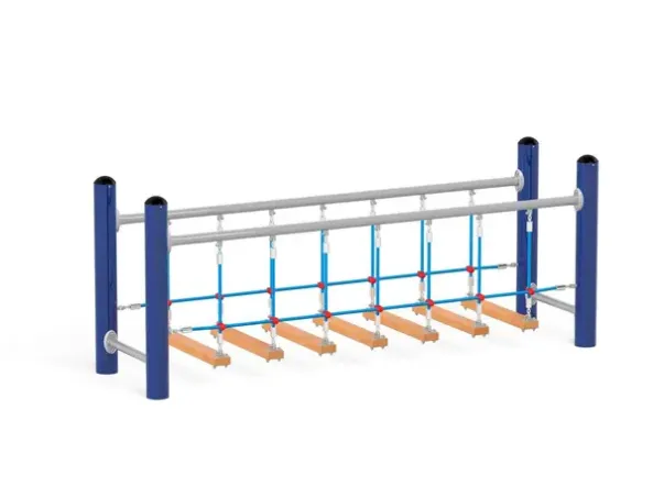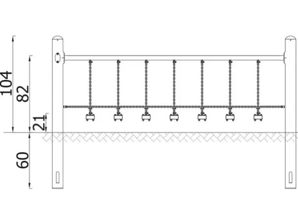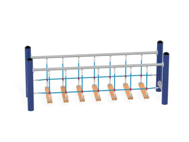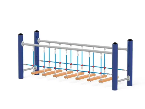 Materiale: Stolperør av S235 stål (Ø114,3 mm), galvanisert og pulverlakkert, tau av polypropylen med stålkjerne (Ø16 mm)