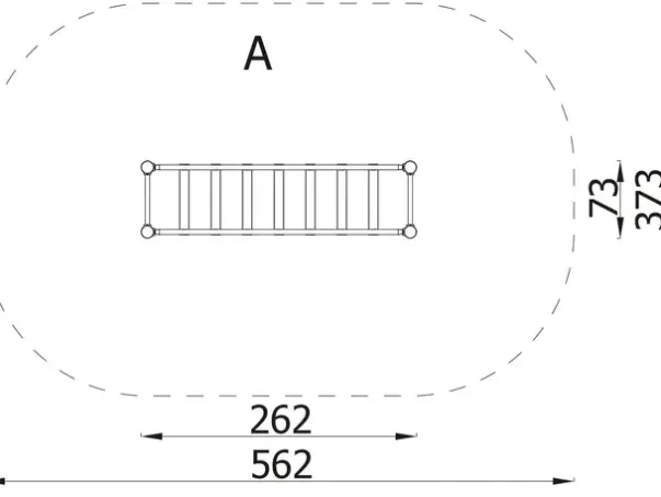 Sikkerhetsareal: L562 x B373 cm, 19 m²