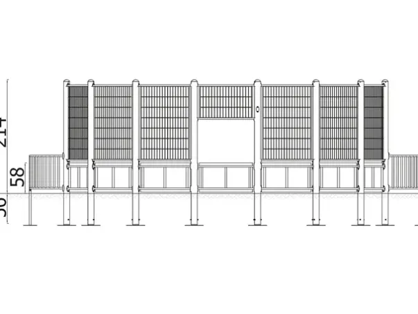 Materiale: Galvanisert og pulverlakkert stål, bæreelementer (Ø114,3 mm) av S235 konstruksjonsstål, HDPE-paneler