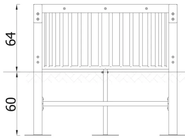Materiale: Galvanisert og pulverlakkert stål, bæreelementer av S235 konstruksjonsstål, støttestolper i stål med dimensjoner 80 x 80 mm