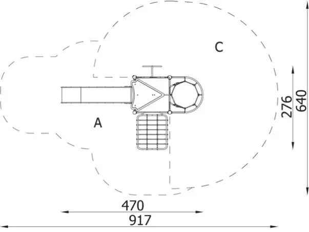 Sikkerhetsareal: L917 x B640 cm