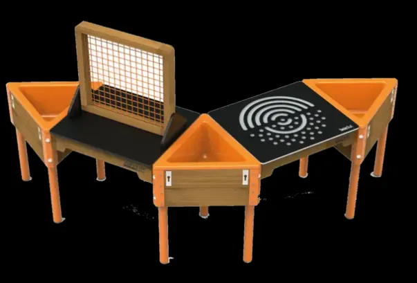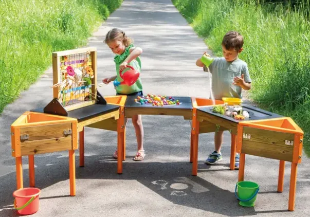 Lekebord, sand- og vann bord, maling, veving, sorteing og rollespill i ett produkt. Denne robuste og praktiske nye lekebordserien for barn er allsidig og mye mer enn vanlige lekebord. Dette systemet tilbyr et uendelig antall lekemuligheter og kan brukes både innendørs og utendørs. I dårlig vær eller om vinteren er de kreative lekebordene også ideelle som håndverksbord med kar for penner, modelleringsleire og og håndverksmaterialer. En allround flott følgesvenn for kreativ lek.