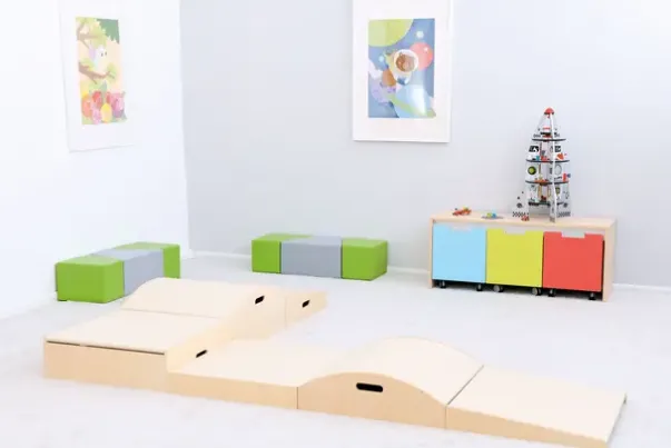 Lekepodie i kryssfiner og støydempende linoleum på toppen.