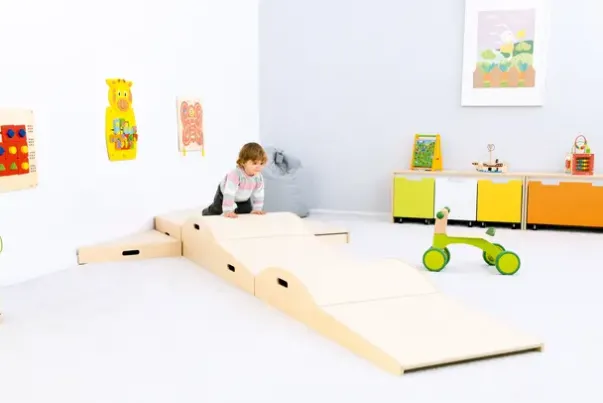 Lekepodie rampe i kryssfiner og støydempende linoleum på toppen.