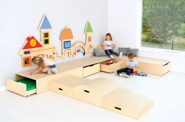Lekepodie rampe i kryssfiner og støydempende linoleum på toppen.